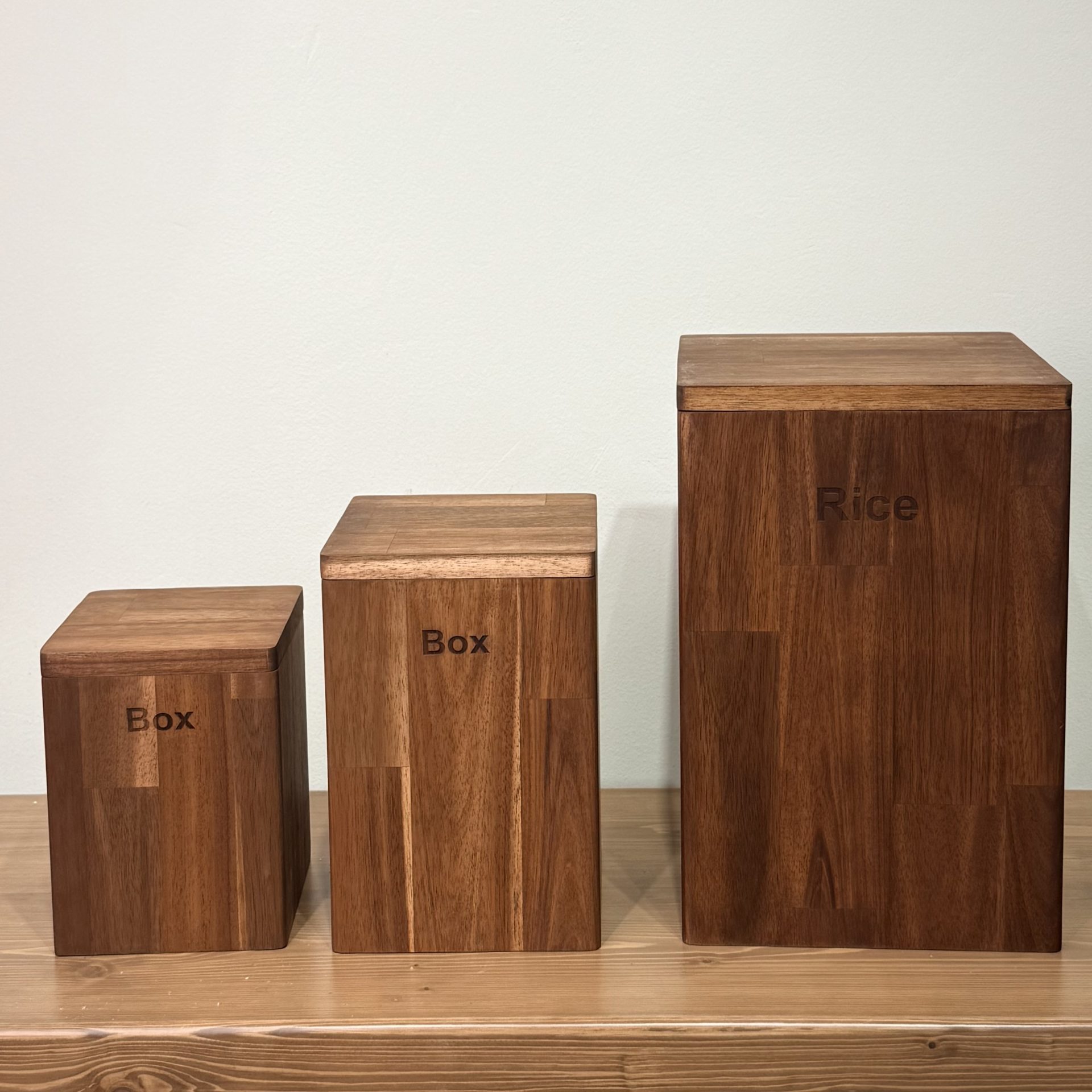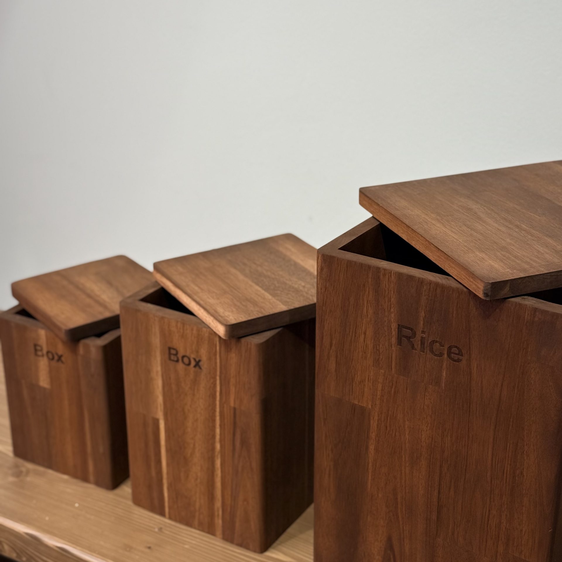 با ست سهتایی باکس چوبی، فضای آشپزخانه یا کابینت خود را به شکلی منظم و زیبا ساماندهی کنید. این مجموعه شامل دو ظرف چندمنظوره با عنوان “Box” و یک ظرف بزرگتر مخصوص نگهداری برنج با عنوان “Rice” است. طراحی ساده، بافت طبیعی چوب و برچسبهای واضح، این ست را به انتخابی عالی برای دکوراسیونهای مینیمال و طبیعی تبدیل کردهاند.