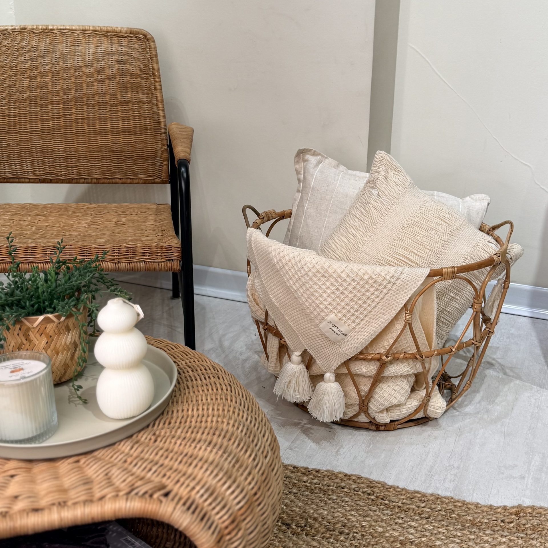 سبد دکوراتیو حصیری – ترکیب طبیعت و نظم در فضای خانه