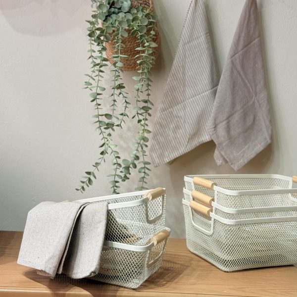 سبد فلزی توری دستهدار (سایز کوچک و بزرگ): نظمدهی شیک و کاربردی