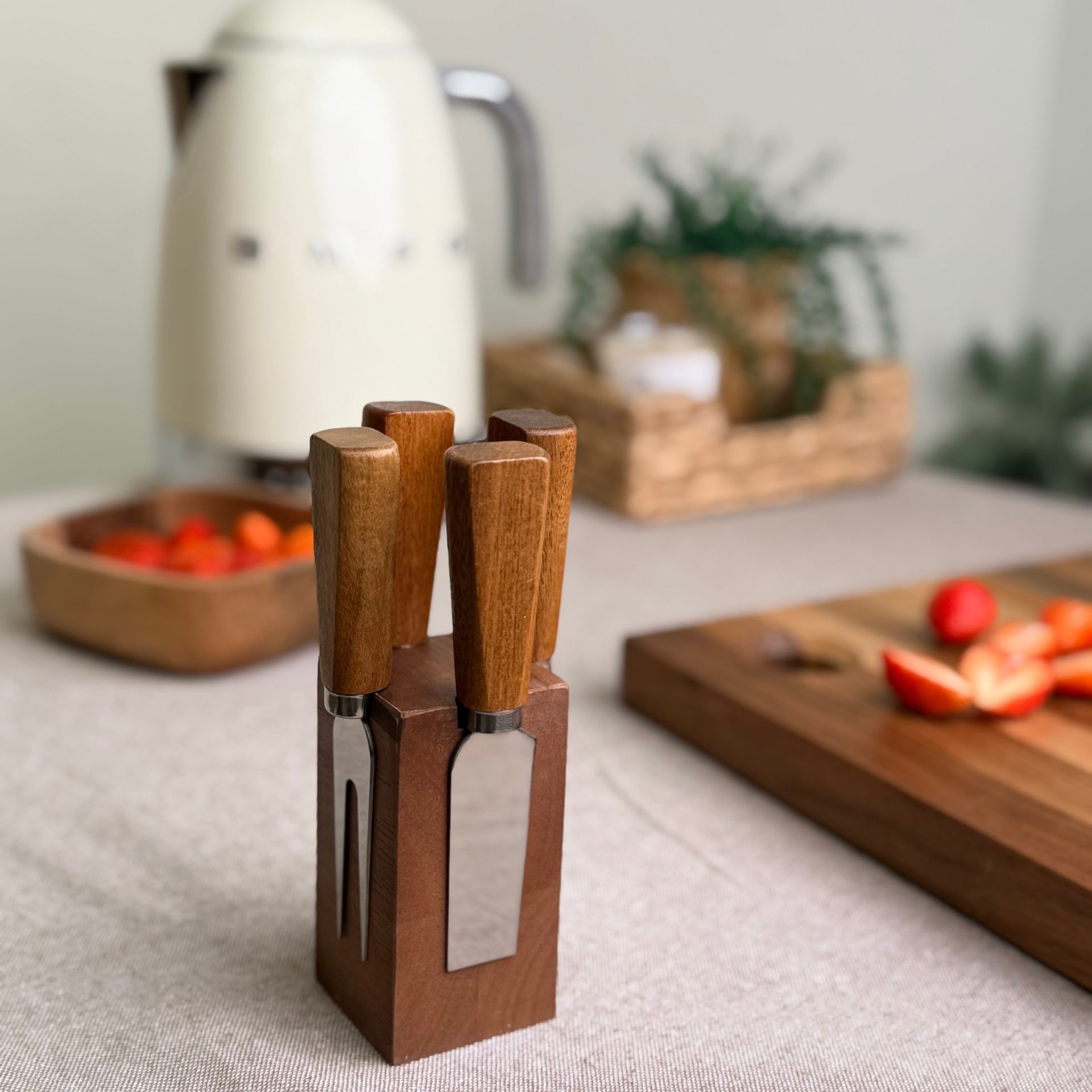 ست ابزار پنیر با جا ابزاری چوبی – ترکیب کاربرد و زیبایی در آشپزخانه شما