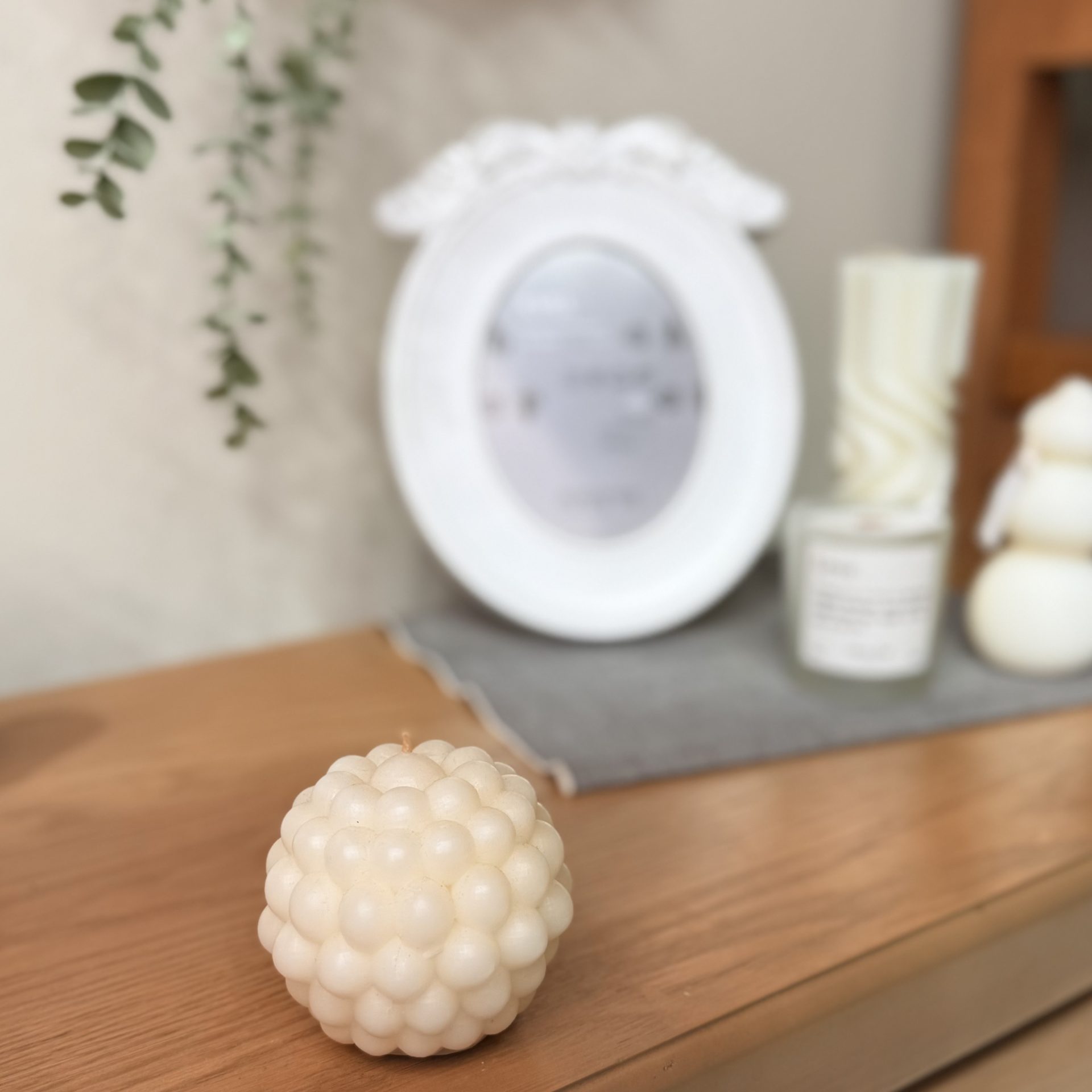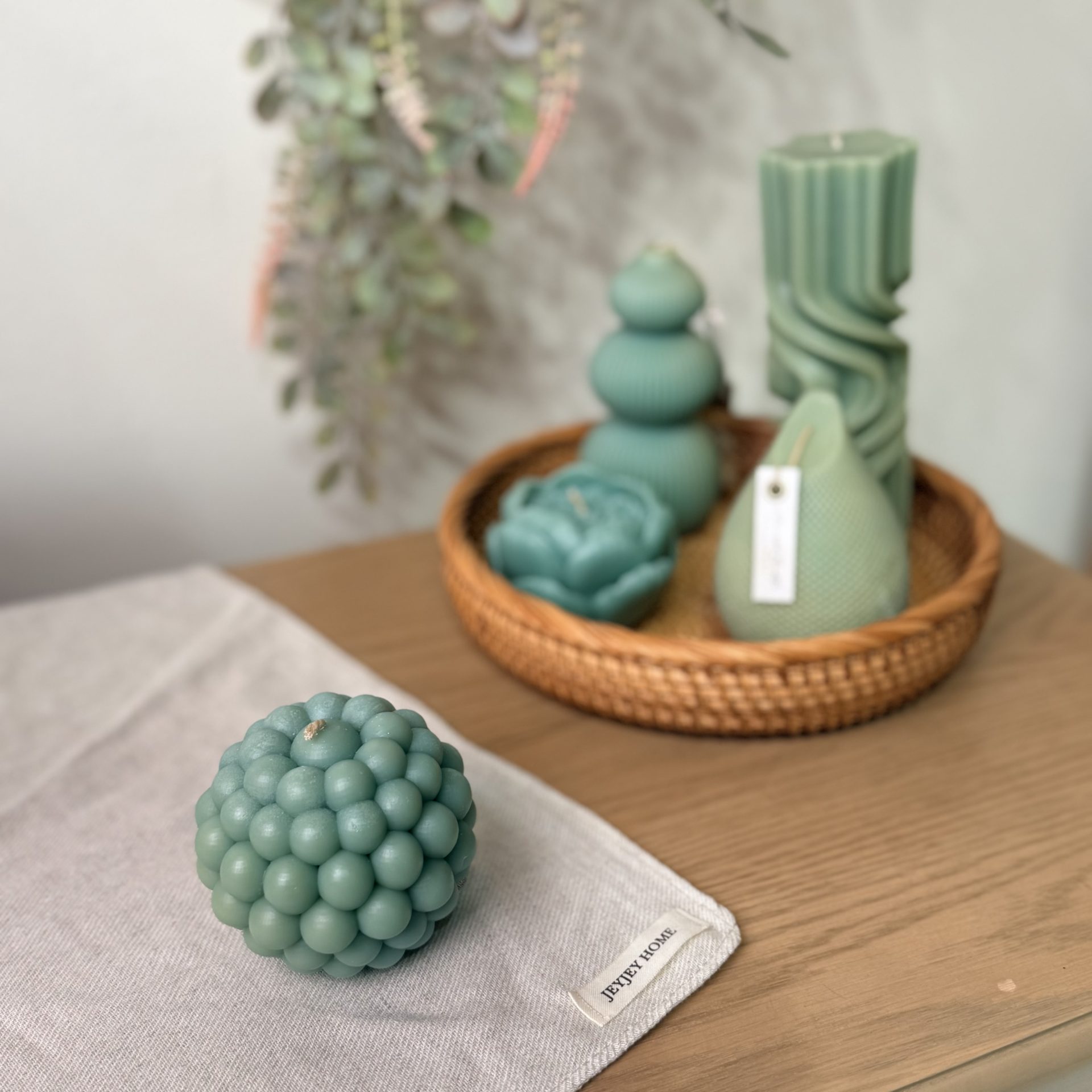 شمع کره توپی معطر شده با اسانس های طبیعی لوندر، گل های بهاری، جنگل بارانی.