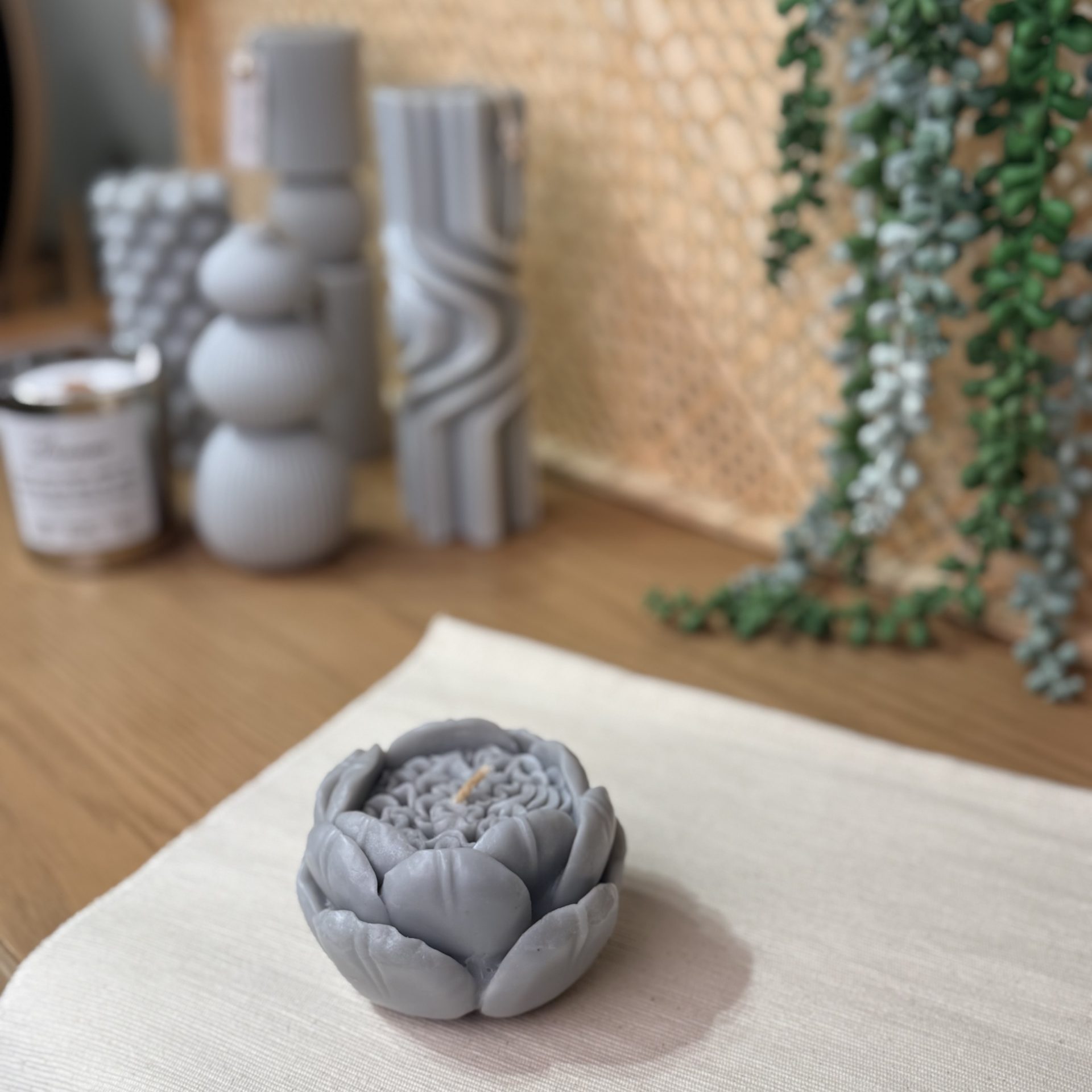 - شمع گل پیونی معطر شده با اسانس های طبیعی لوندر، گل های بهاری، جنگل بارانی.