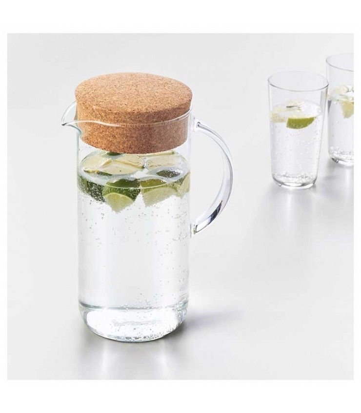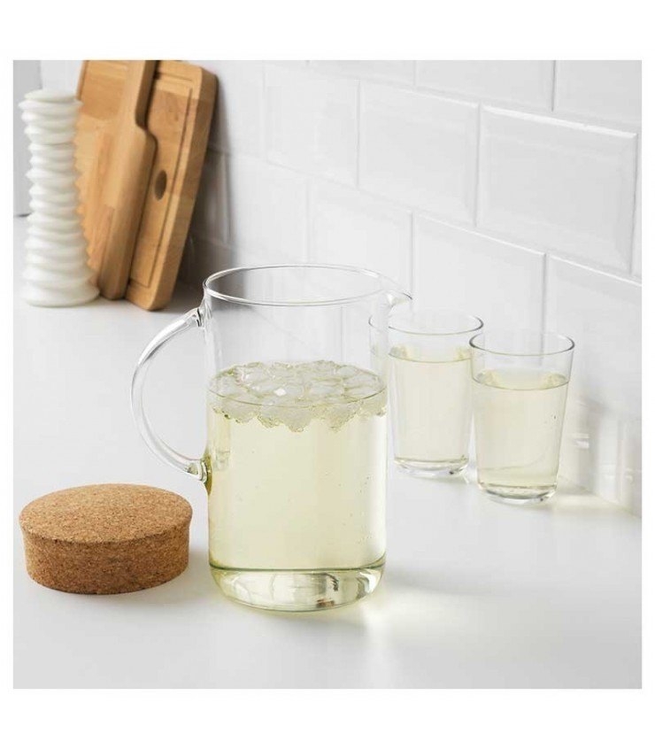 با پارچ شیشه‌ای ایکیا مدل VARDAGEN، تجربه‌ای متفاوت از سرو نوشیدنی‌های گرم و سرد را در خانه یا محل کار داشته باشید. طراحی شفاف و مینیمال این پارچ، در کنار درب چوبی طبیعی، ترکیبی از عملکرد و زیبایی را به آشپزخانه شما می‌آورد
